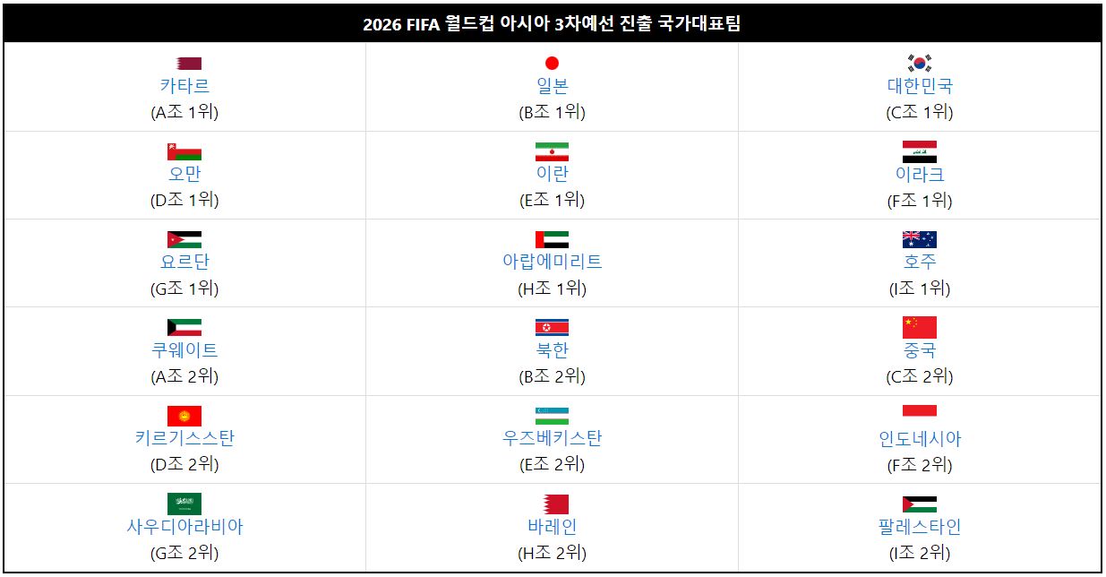 2026 FIFA 월드컵 아시아 3차 예선 진출 국가