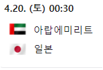 대한민국 vs 아랍에미리트 | 4월 17일 (수) 00:30 | 압둘라 빈 칼리파 스타디움 |